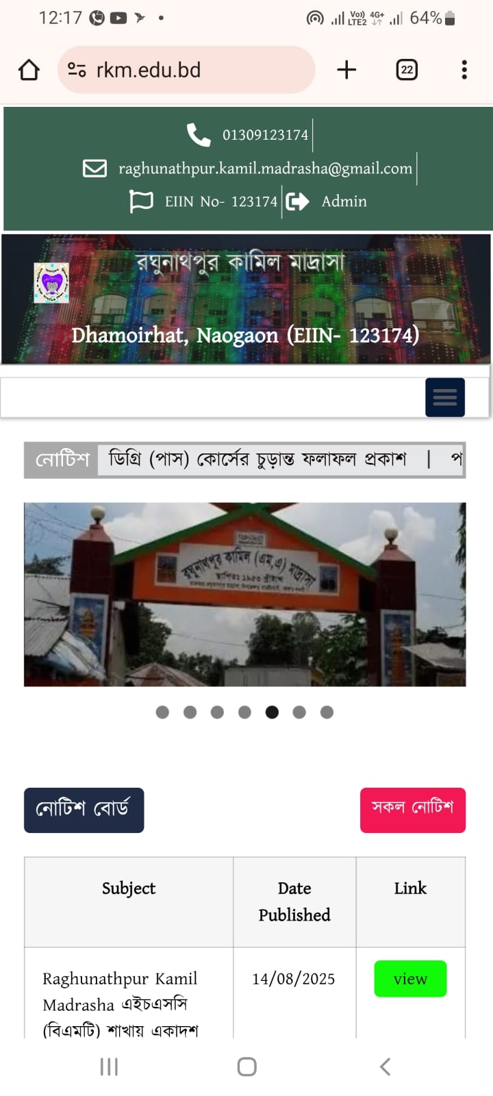 Raghunathpur Kamil Madrasha এইচএসসি (বিএমটি) শাখায় একাদশ শ্রেনীতে ভর্তি চলিতেছে